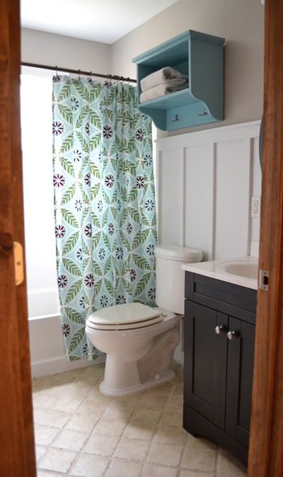 There was a good bit left over after the kitchen, so I decided to paint both the cabinets in the master and spare bathrooms. The darker brown color really makes the lighter counter top pop. It looked great! But that was as far as the bathroom would go on updating, until now!